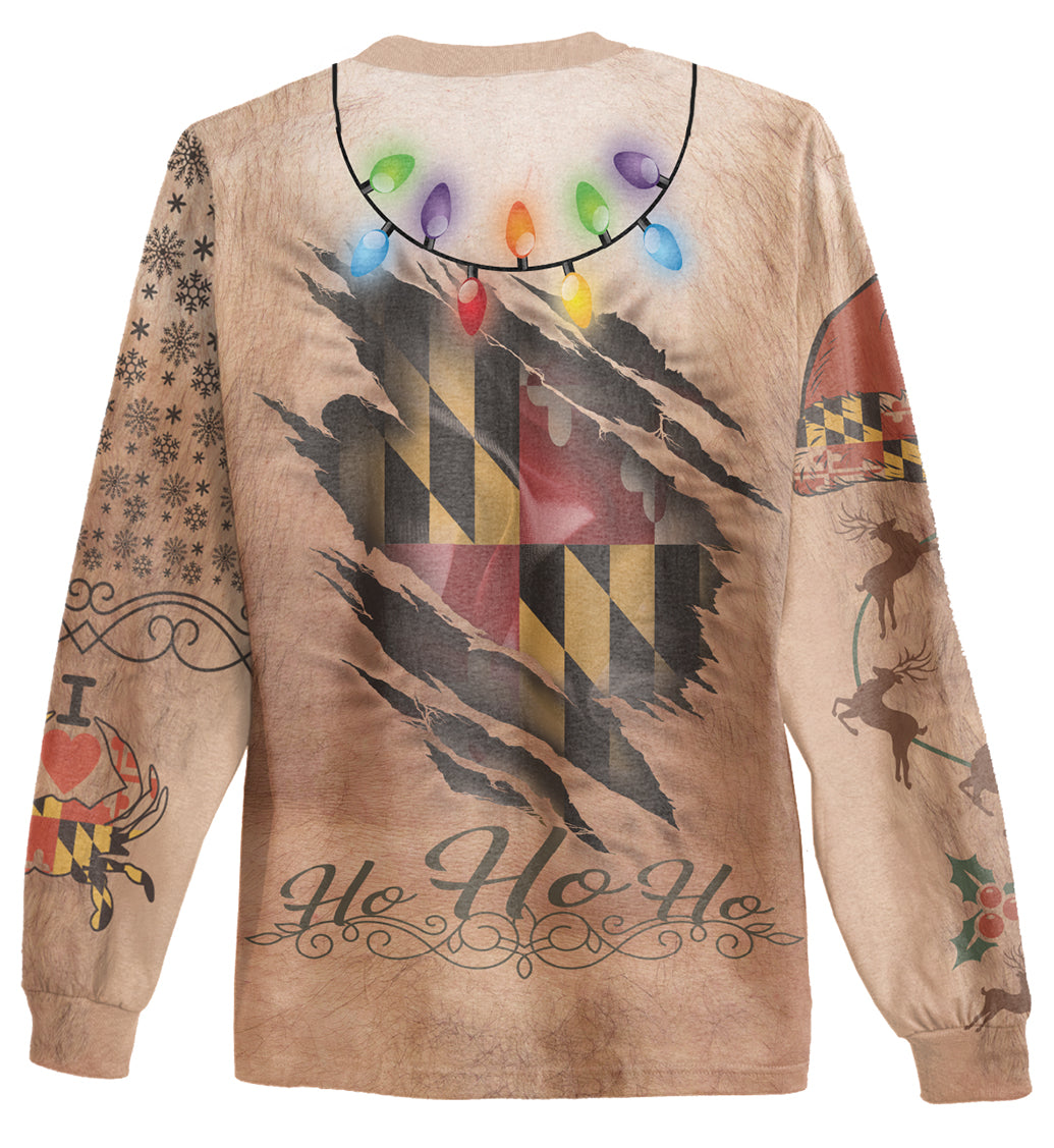 Big, hairy and tattooed, this isn't your typical Santa sweater... Cheers!
