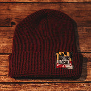 This waffle knit beanie is super soft and comfy and features the Drink Local Maryland tag stitched on to the cuff.