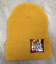 This waffle knit beanie is super soft and comfy and features the Drink Local Maryland tag stitched on to the cuff.