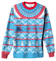 Maryland themed ugly holiday sweater, sublimated on soft fleece. Featuring the Maryland flag and Santa's sleigh being pulled by some crabs!