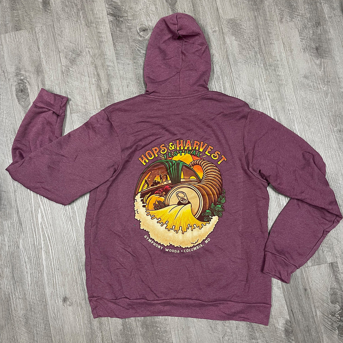Hops and Harvest Festival Cornucopia design printed on a super soft pullover hoodie.