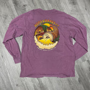 Hops and Harvest cornucopia design printed on long sleeve comfort colors shirt.